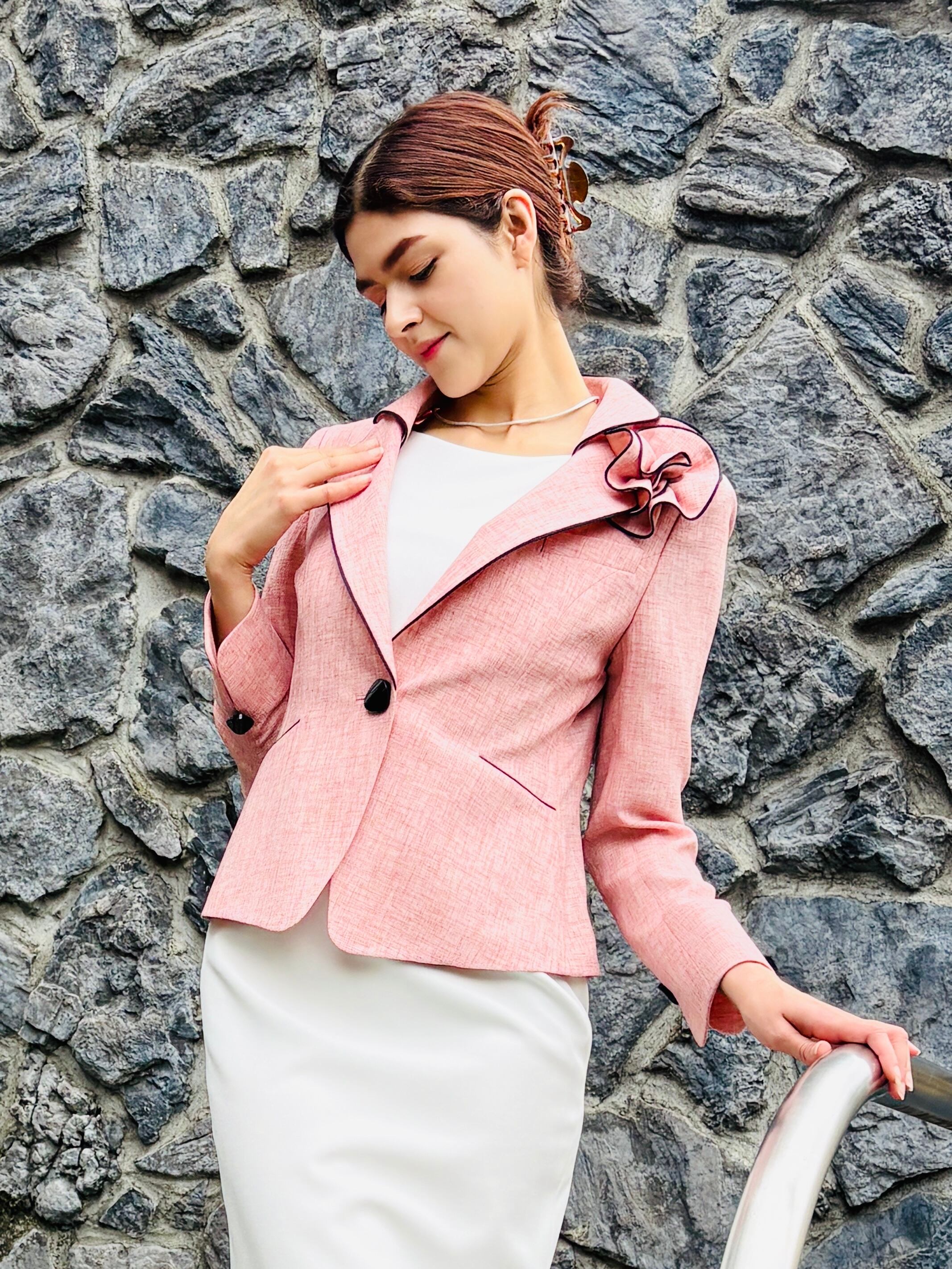 上質な軽やかさが魅力のカラージャケットです!軽い素材で仕立てられたこのジャケットは、着心地が良く、気軽に羽織れる一品となっています。紺のはみ出しがアクセントとなり、シンプルながらもスタイリッシュな印象を与えてくれます。