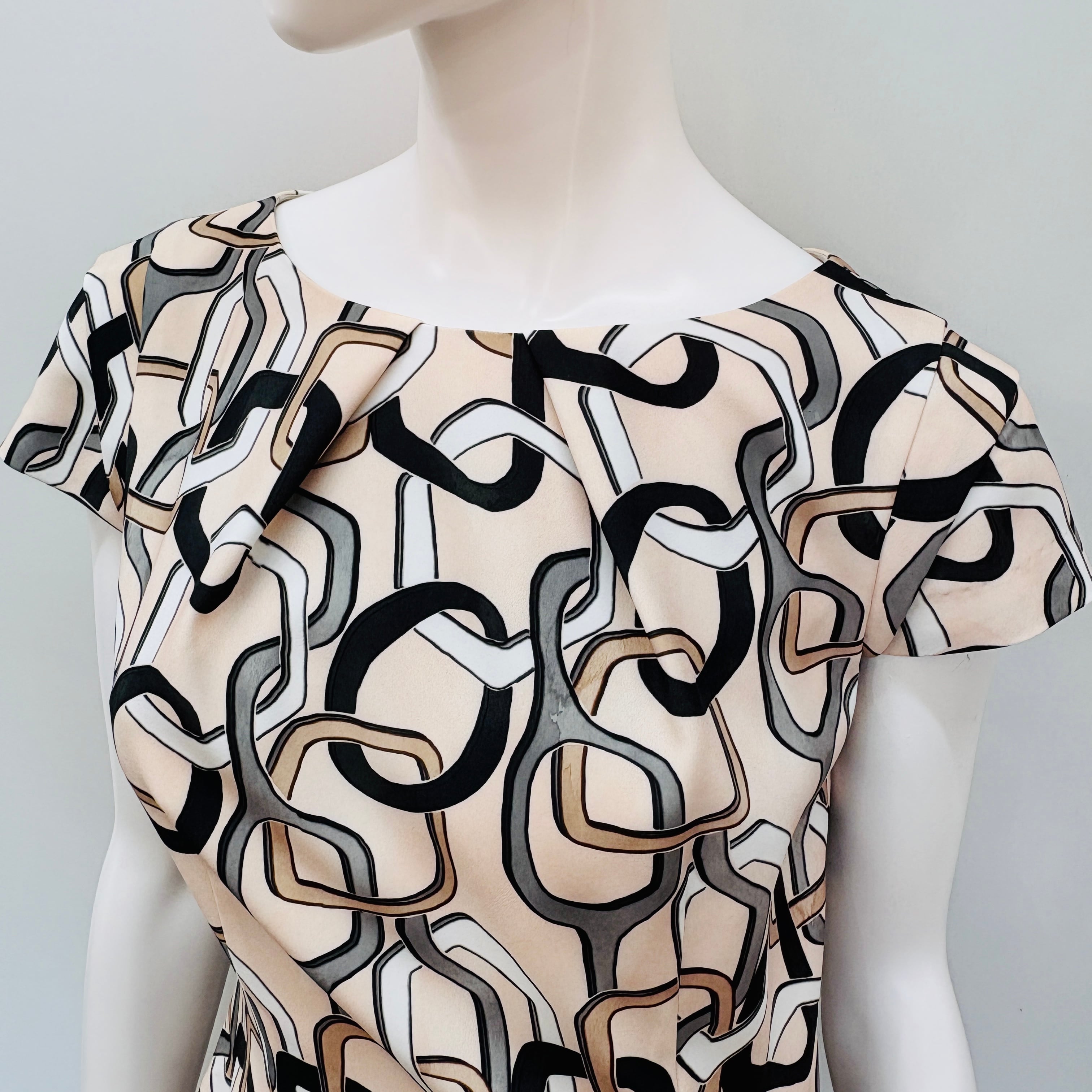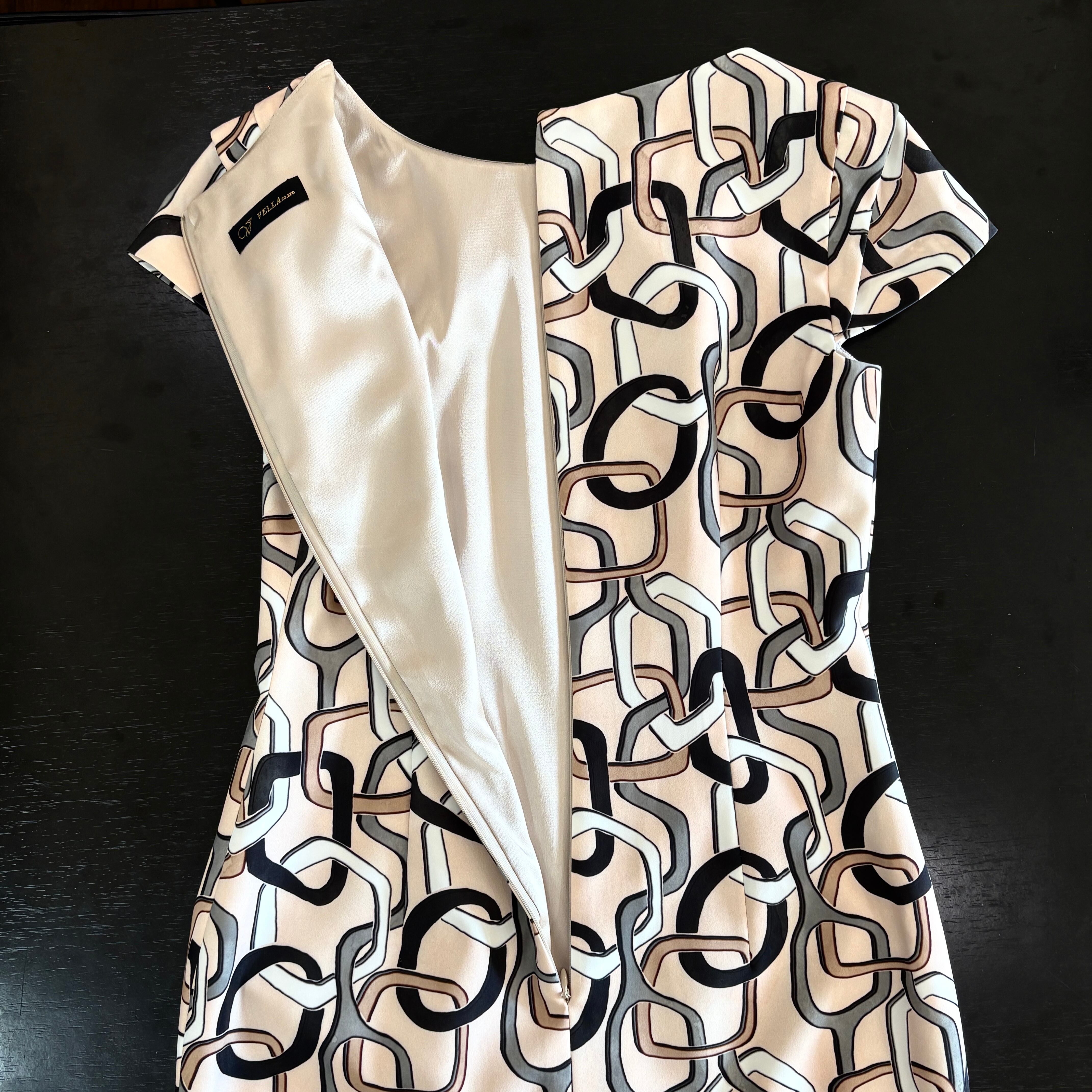 上品でエレガントな印象を与えるチェーン柄の袖丈付きワンピース(ベージュ×ブラック)です!洗練されたデザインながらも、着心地は軽やかで、特別な日からカジュアルなお出かけまで幅広くコーディネートを楽しむことができます。ベージュとブラックの組み合わせが、シンプルながらもスタイリッシュな雰囲気を演出し、あなたのワードローブに華やかさをプラスします。この一着があれば、さまざまなシーンで活躍すること間違いなしです!