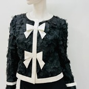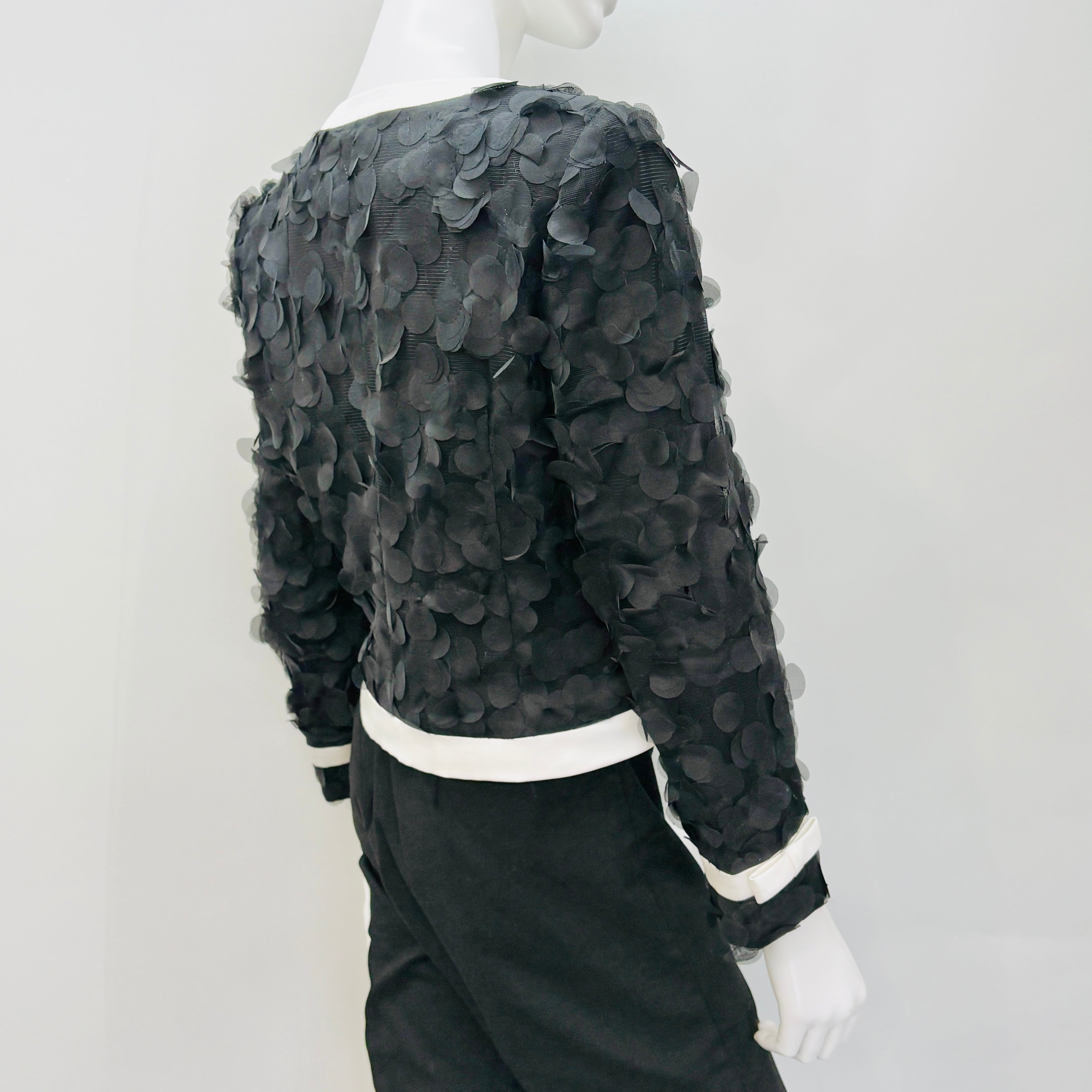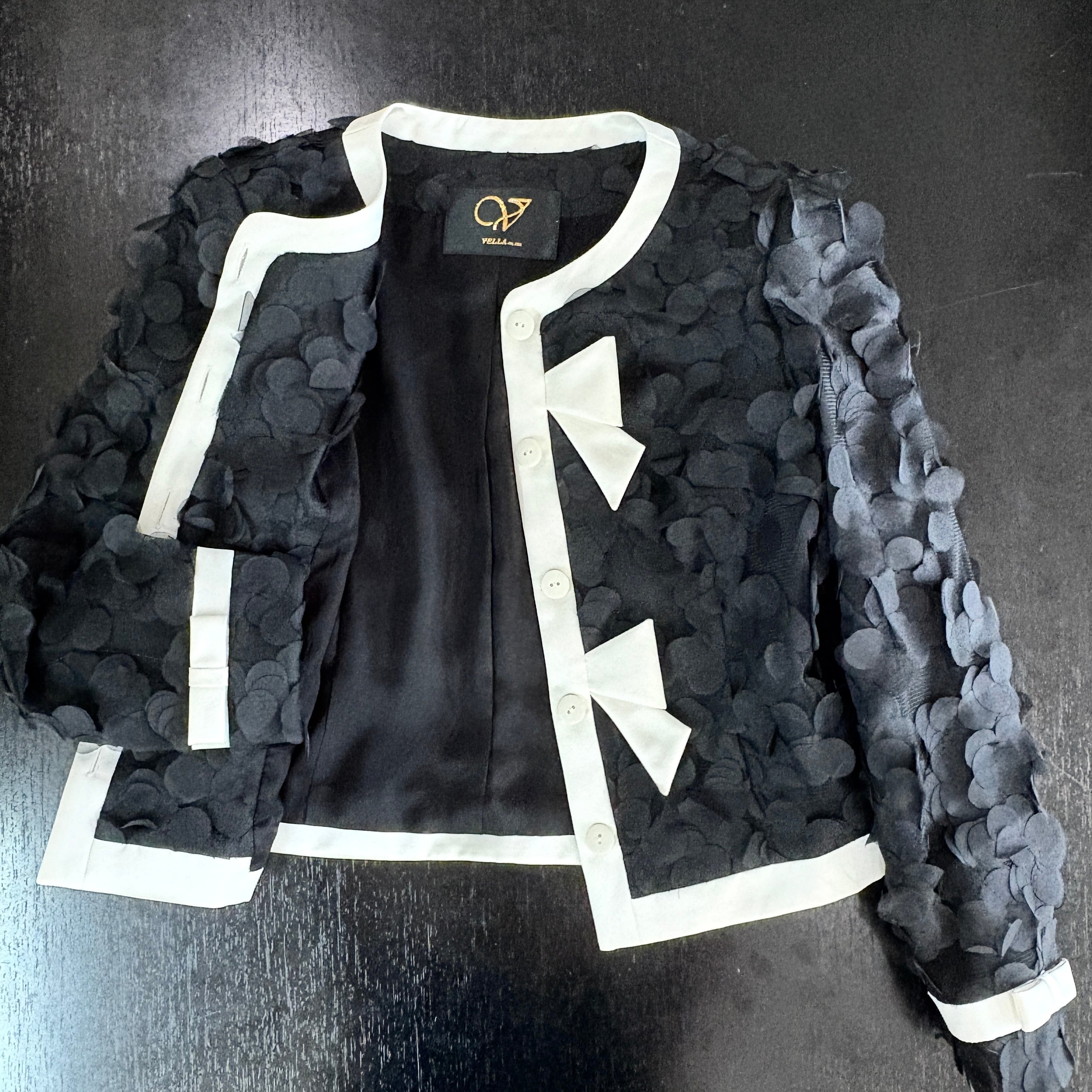 サークルチュールに黒サテンの縁取りを施し、リボンが華やかさをプラスしたエレガントなアイテムです。特別な日のお出かけや、フォーマルなシーンでの着用にぴったりのデザインが魅力。軽やかなチュール素材が、着用時に優雅な印象を演出します。