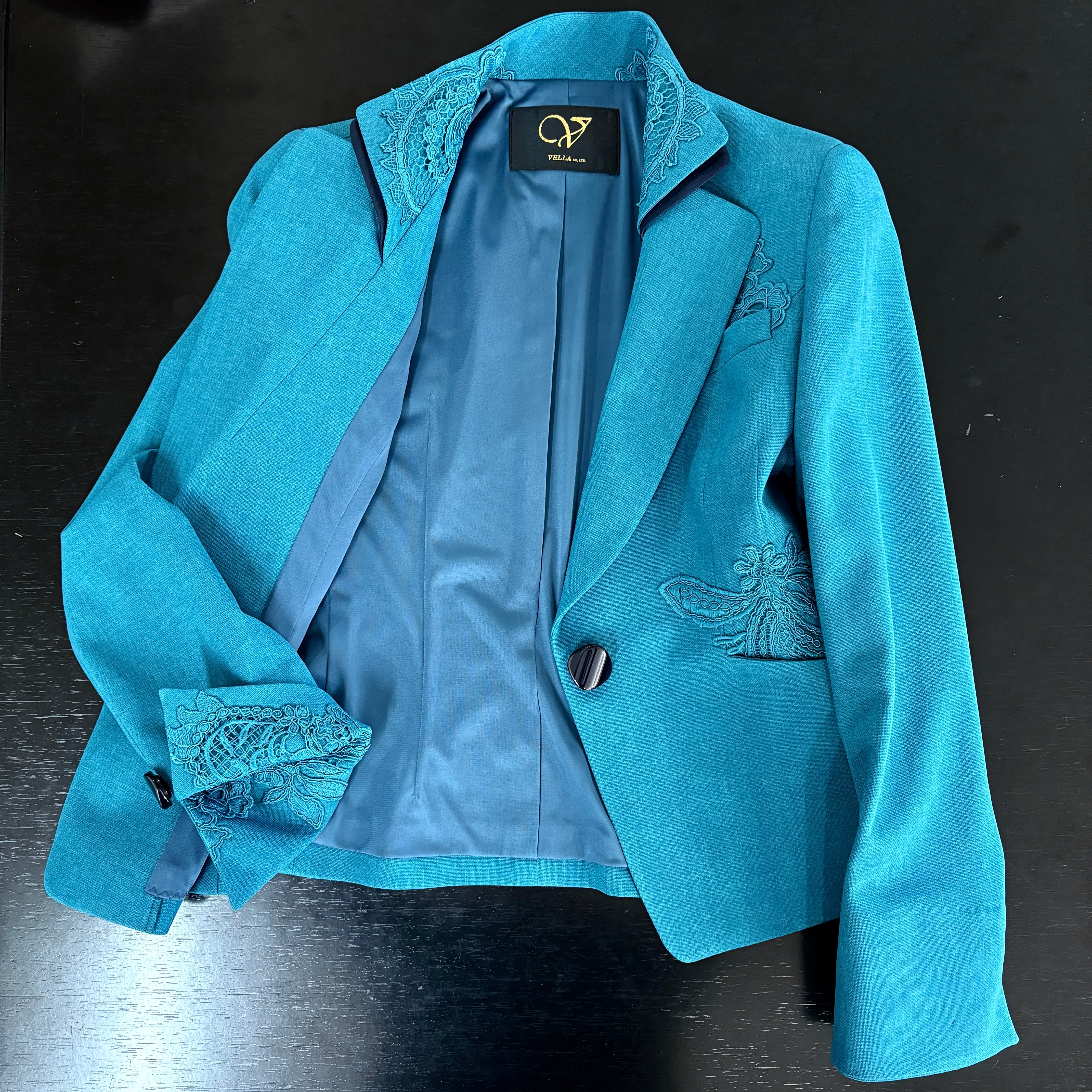 このベージュジャケットは、同色のレースをあしらったエレガントなデザインが特徴です。シンプルながらも華やかさを感じさせる一着で、特別な日のお出かけにも、普段使いにもぴったりです。上品な雰囲気を持ちながら、さまざまなコーディネートに合わせやすいのが魅力です!