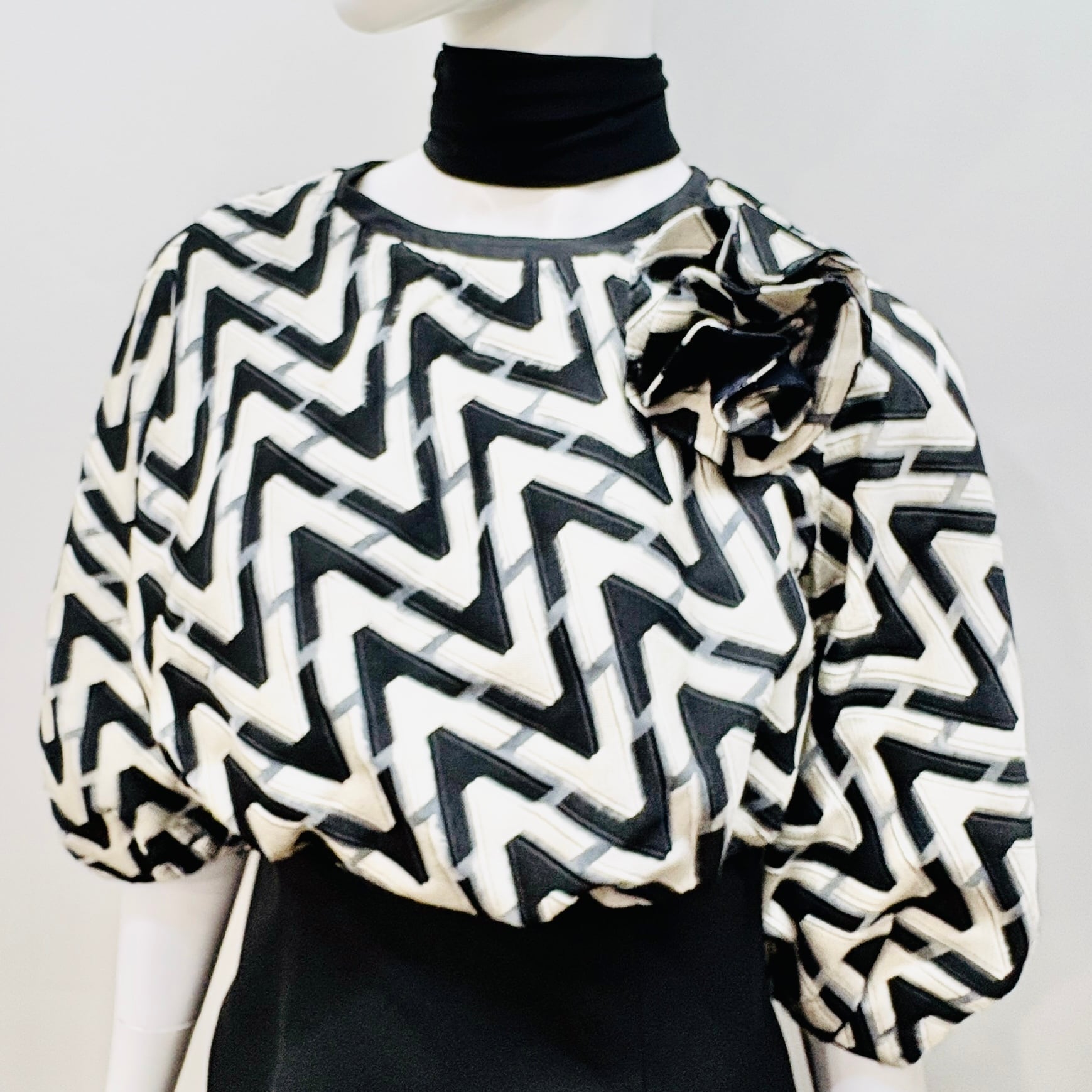 エレガントで洗練されたスタイルを叶えるブラウジングワンピース。ベージュ×ブラックの柄が、シックでありながらも女性らしい印象を与え、特別な日からカジュアルな日常まで幅広くご活用いただける一着です。袖の膨らみが特徴的で、動くたびに華やかなシルエットを演出します!