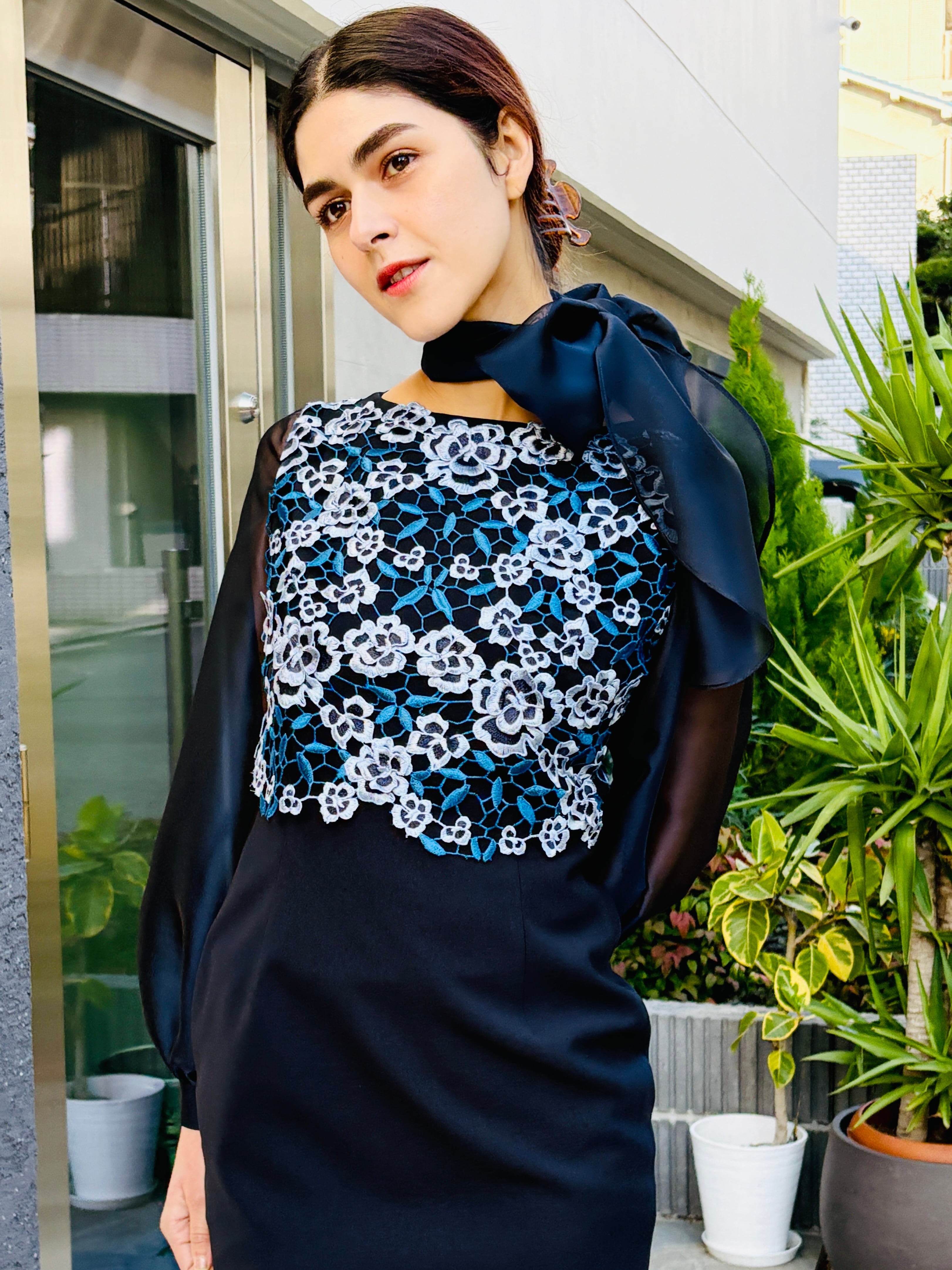 高級インポートレースを使用したエレガントな雰囲気を纏う身頃レースワンピース。