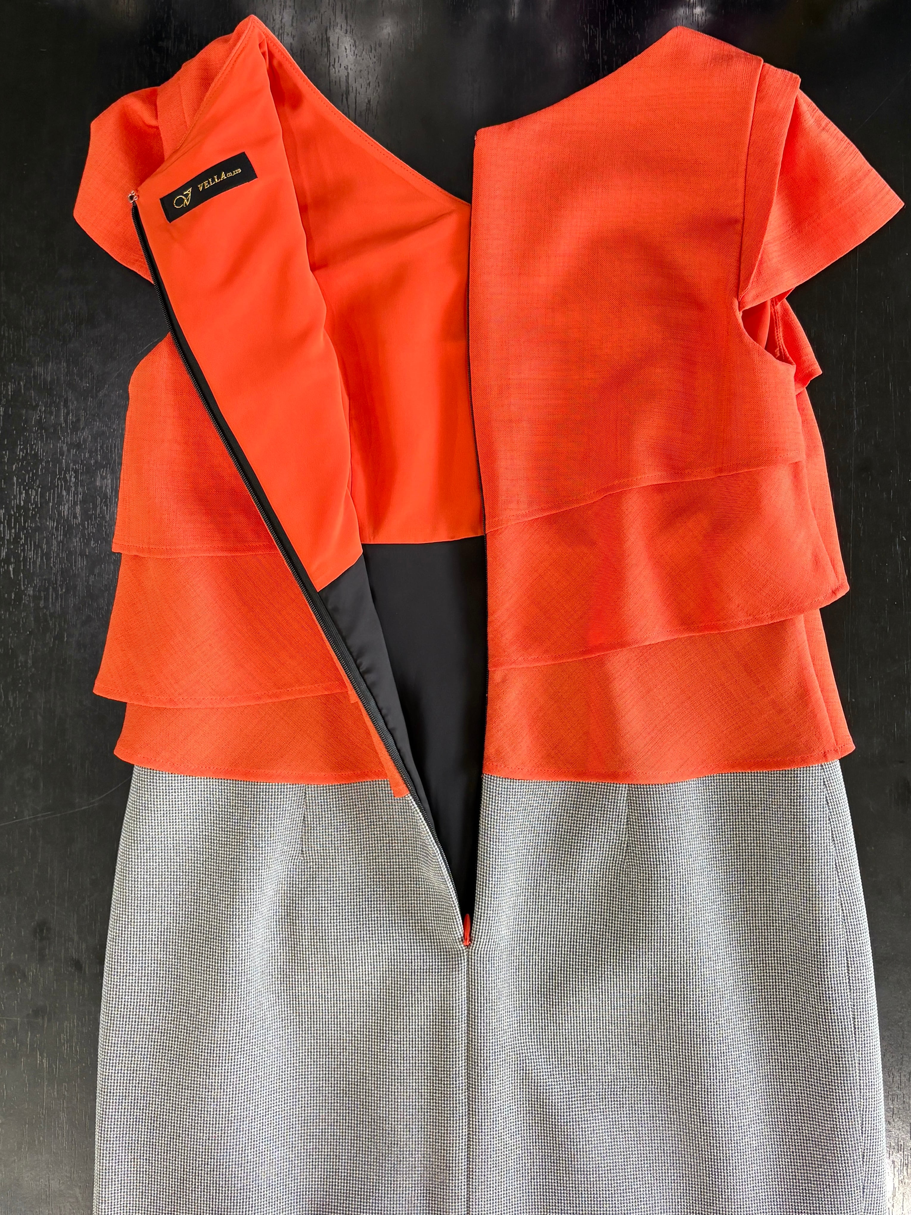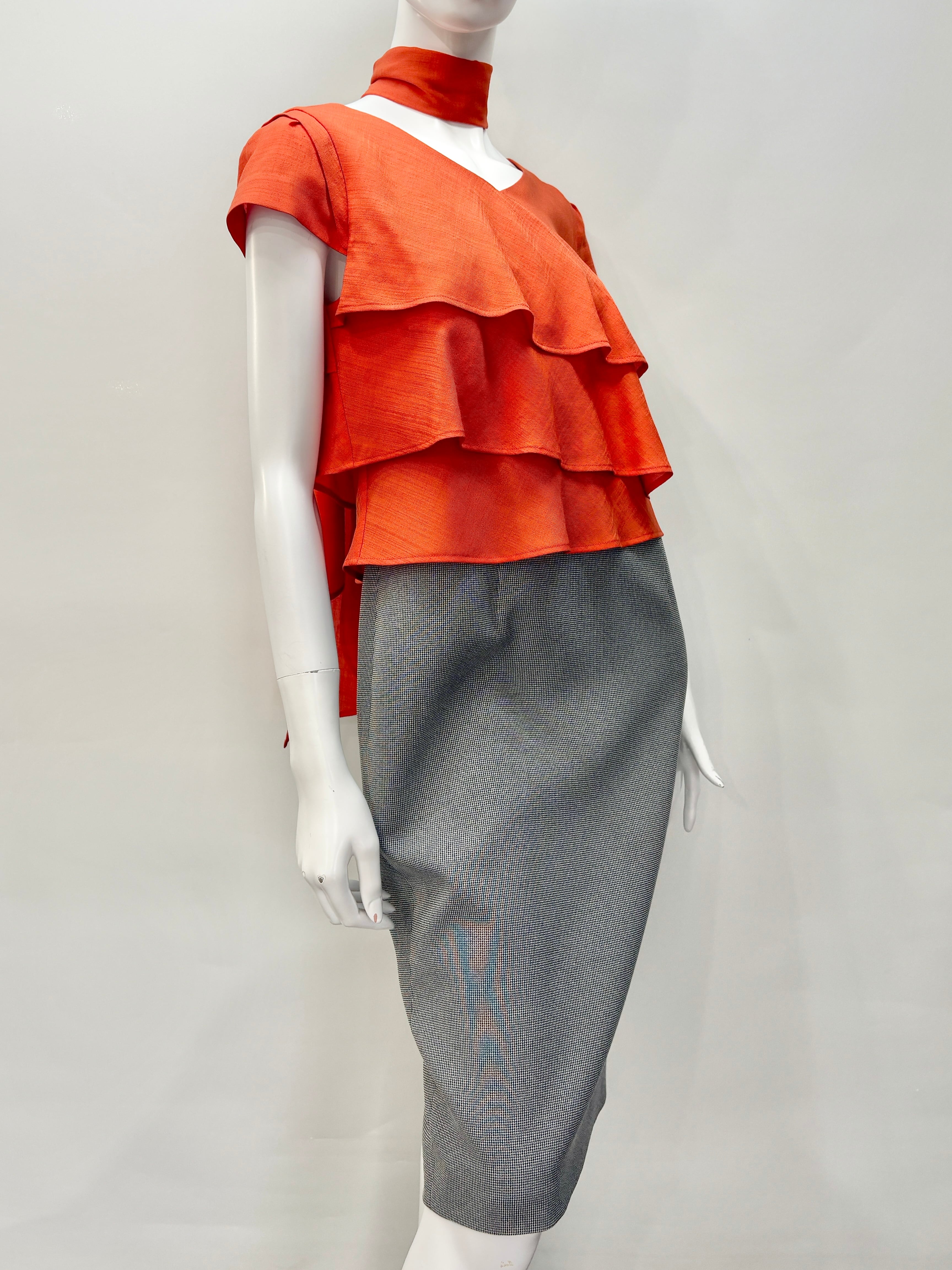 美しいオレンジのドレープが女性らしさを際立たせ、スカート部分のギンガムチェックがかわいらしいアクセントを添えています。シンプルでありながらスタイリングの幅を豊かに広げるこのアイテムは、フォーマルなシーンからカジュアルなお出かけまで、様々な場面で活躍することが期待できます。着心地の良さとデザインの美しさが見事に調和した、手に入れたい一着です!