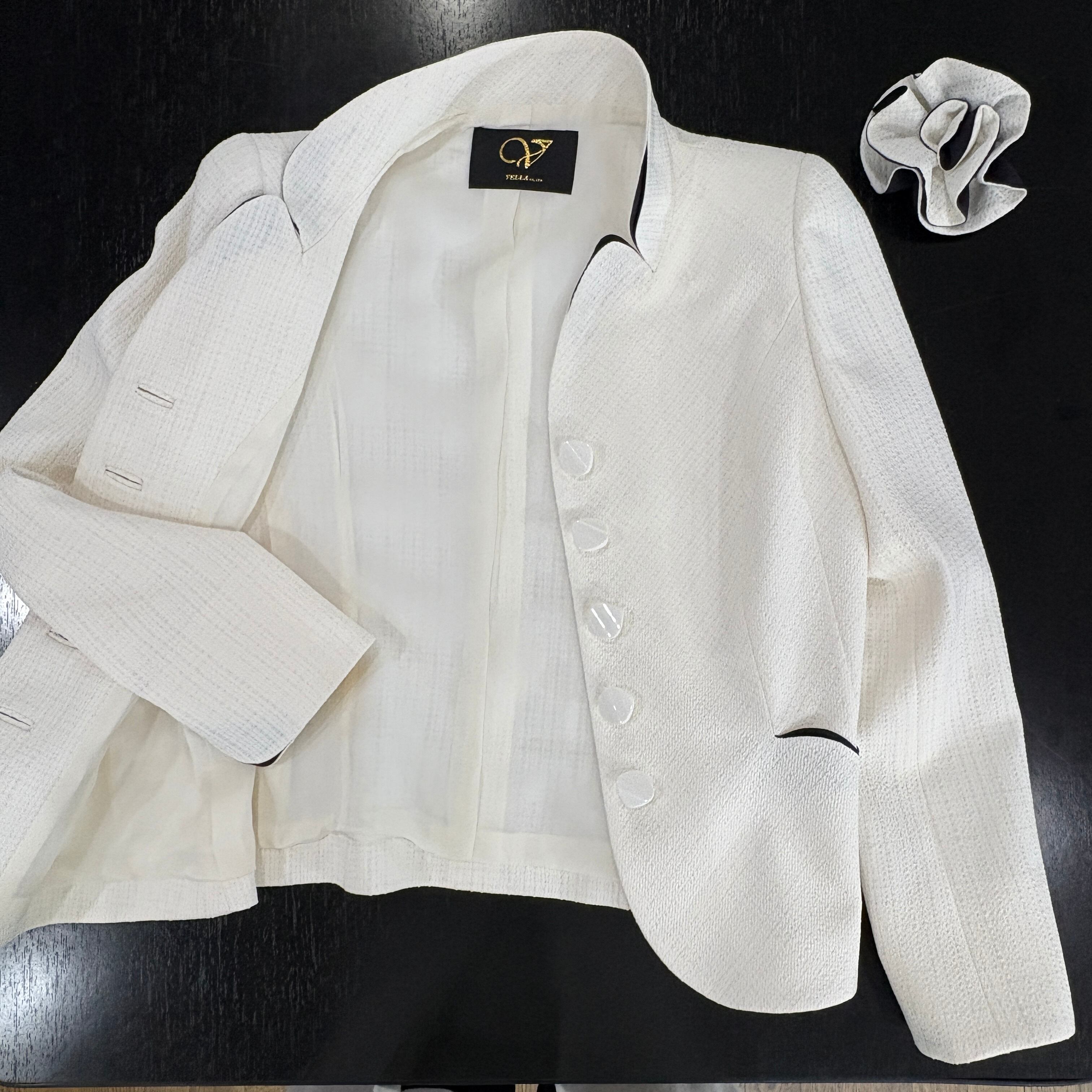 エレガントな魅力を纏うセレモニースーツです。このスーツは、特別なシーンやフォーマルなイベントにぴったりで、洗練された印象を与えます。表面効果の素材が、上品な雰囲気を引き立て、あなたの魅力を最大限に引き出すことができるでしょう!柔らかな仕立てが、美しいシルエットを実現します。